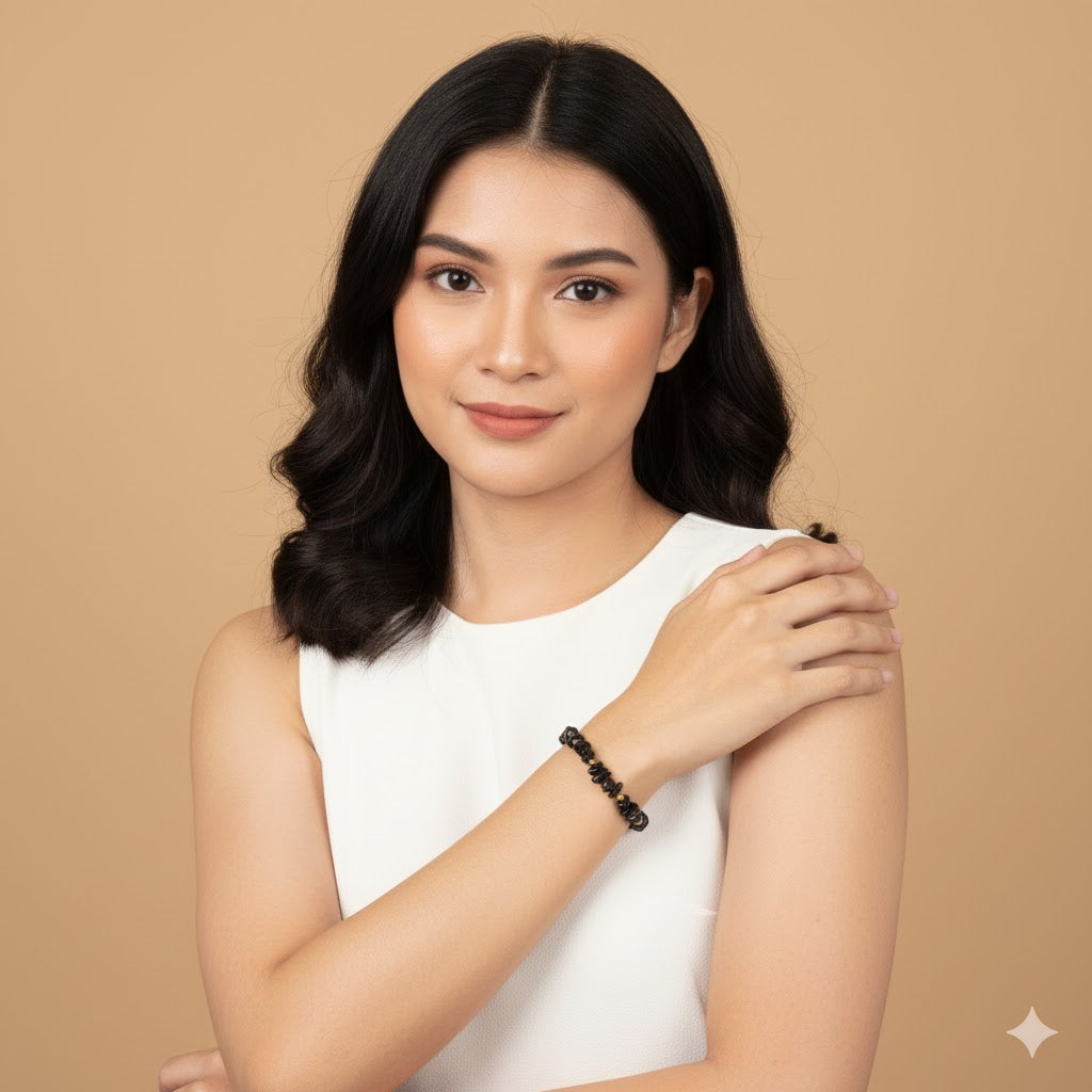 The Bohemian Harmony Black Tourmaline Bracelet is a bold and protective accessory that channels grounding energy and effortless edge. Featuring hand-selected Black Tourmaline stones with their raw, deep black tones and natural texture, this piece is paired with rustic brass accents to create a powerful yet artful design. The Bohemian Harmony Black Tourmaline Bracelet is perfect for those who value strength, resilience, and spiritual protection. A true talisman for the modern soul, it adds a touch of mystery and earthy confidence to your style—ideal for navigating life with intention and fearless authenticity.