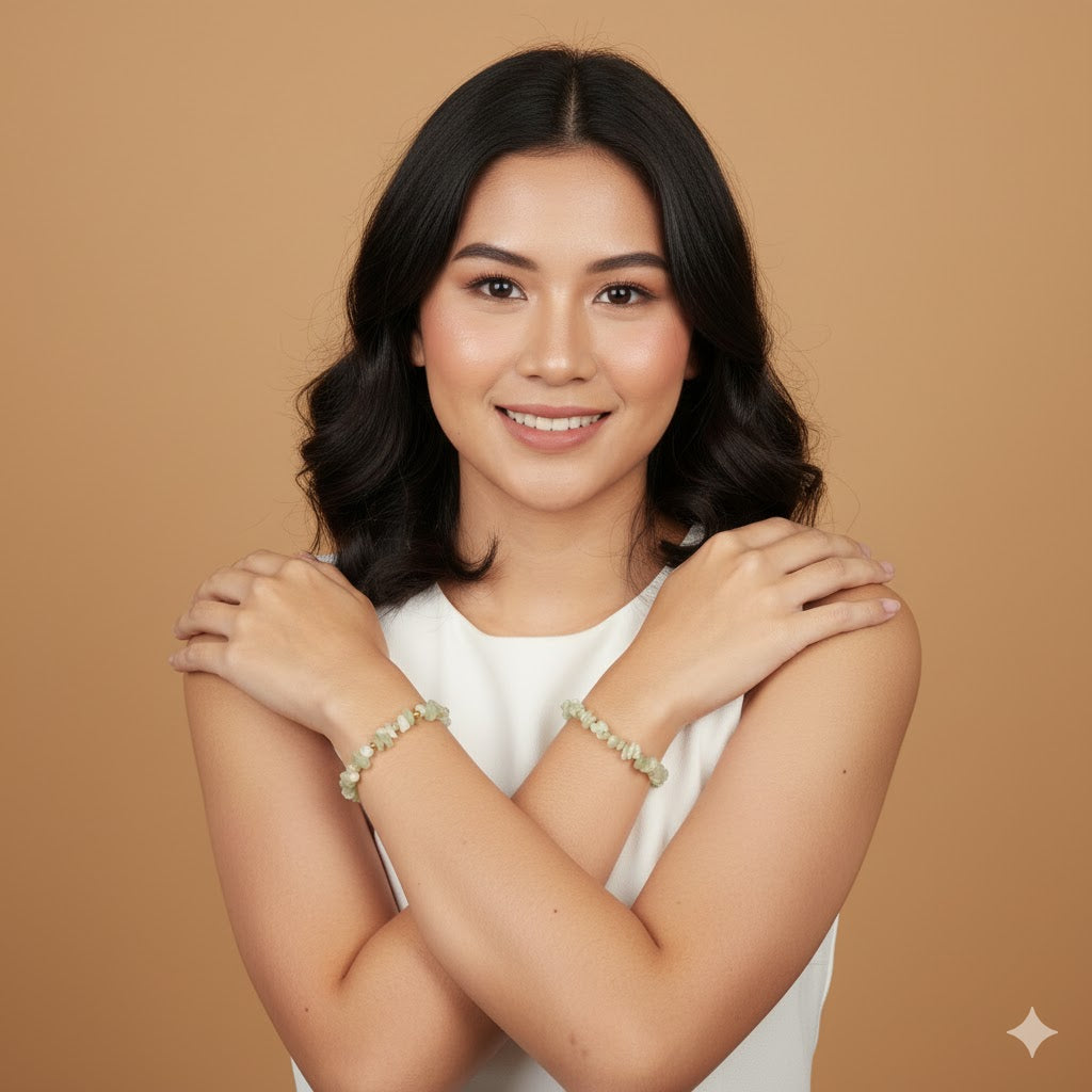 The Bohemian Harmony Mountain Jade Bracelet is a peaceful and grounding piece that draws strength from the stillness of nature. Each Mountain Jade stone is hand-selected for its smooth texture and rich earthy green hues, evoking the quiet majesty of forested peaks and ancient landscapes. Paired with antique brass accents, this bracelet reflects a rustic elegance rooted in natural simplicity. The Bohemian Harmony Mountain Jade Bracelet is perfect for those who value balance, resilience, and a deep connection to the earth. A tranquil companion for mindful living, it brings calm strength and organic beauty to your everyday journey.