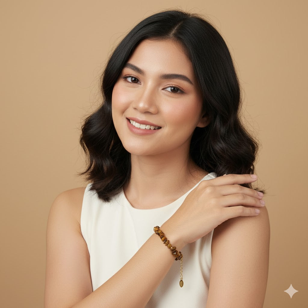 The Bohemian Harmony Tiger Eye Bracelet is a bold and grounding piece that channels strength, focus, and fearless energy. Each Tiger Eye stone is carefully chosen for its golden-brown sheen and mesmerizing chatoyancy, symbolizing clarity, protection, and inner courage. Paired with rustic brass accents, this bracelet blends natural power with bohemian artistry. The Bohemian Harmony Tiger Eye Bracelet is perfect for those who walk with confidence and face challenges with unwavering determination. A talisman of resilience and vision, it adds a touch of fierce elegance to your every adventure.