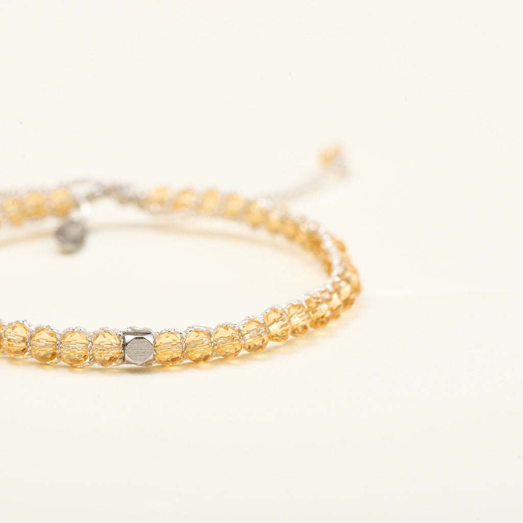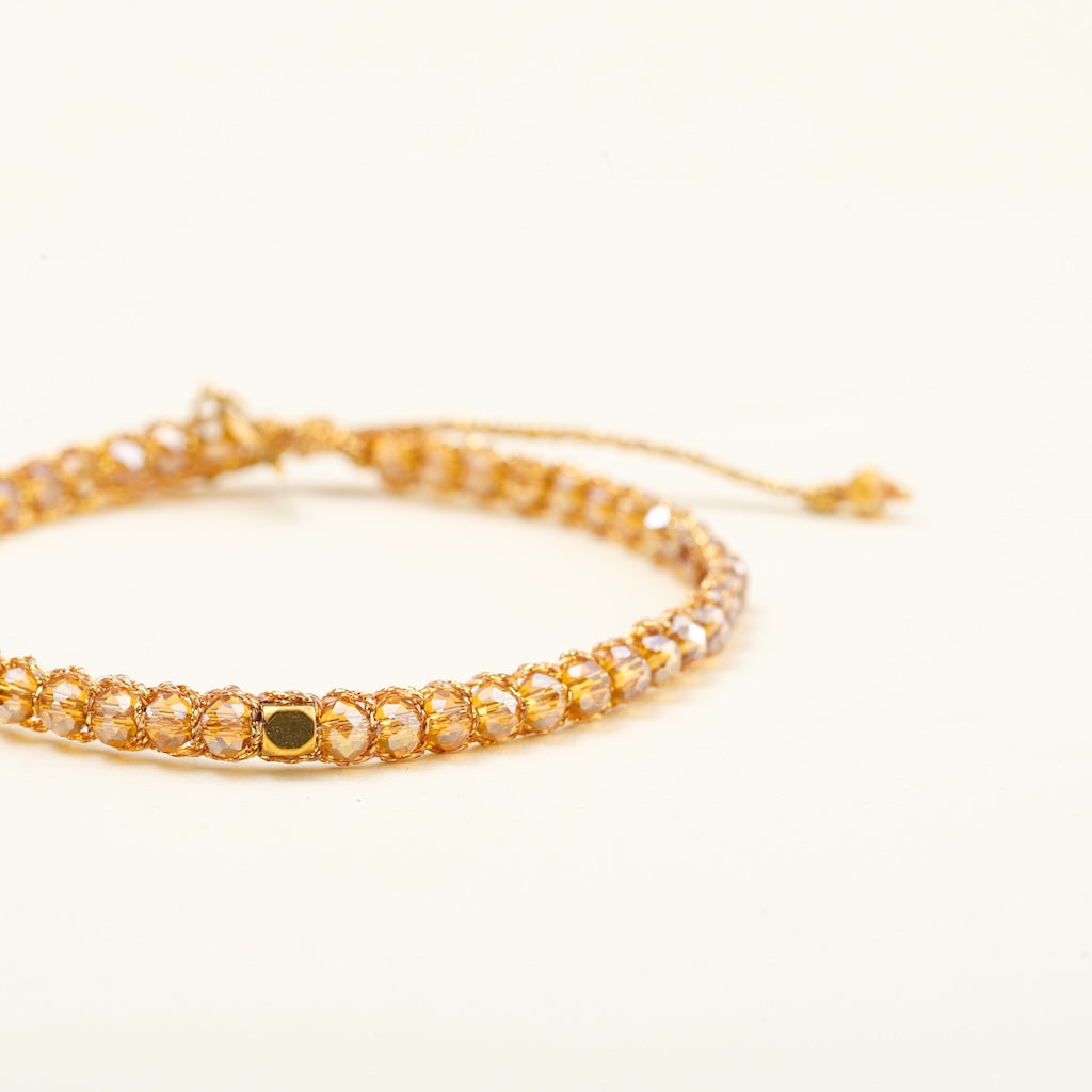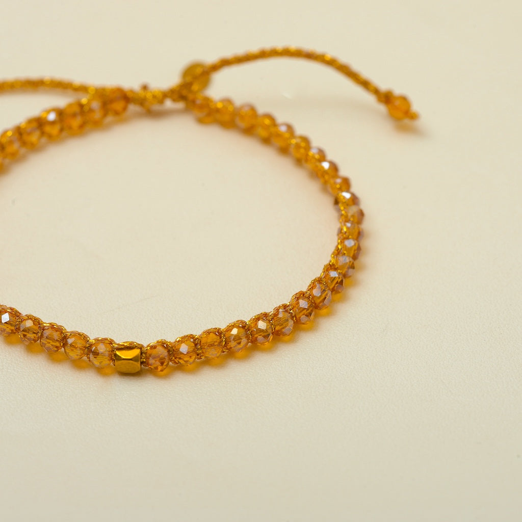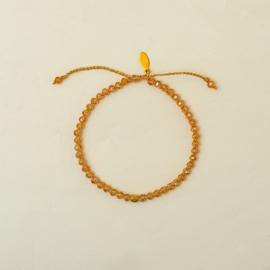Indulge in the warm embrace of our Crystalegance Choco Bracelet, an enchanting accessory that combines earthly allure with sparkling sophistication. This unique piece is adorned with rich chocolate crystals, each meticulously chosen for their deep, smoky hue and tantalizing shine. These crystals emanate a cozy warmth, their earthly tones capturing the comforting essence of a crackling fireside. You have the option of pairing these enticing crystals with either the opulent elegance of gold or the cool luster of silver yarn, accentuating their rich color and adding a touch of luxe to your attire. The Crystalegance Choco Bracelet isn't just an accessory, it's a heartfelt sentiment, carrying a subtle touch of home—a soothing reminder of the familiar warmth and love that your roots provide, regardless of how far you journey. It is the perfect addition to your own jewelry collection or a thoughtful gift for someone special, symbolizing warmth, comfort, and timeless elegance.