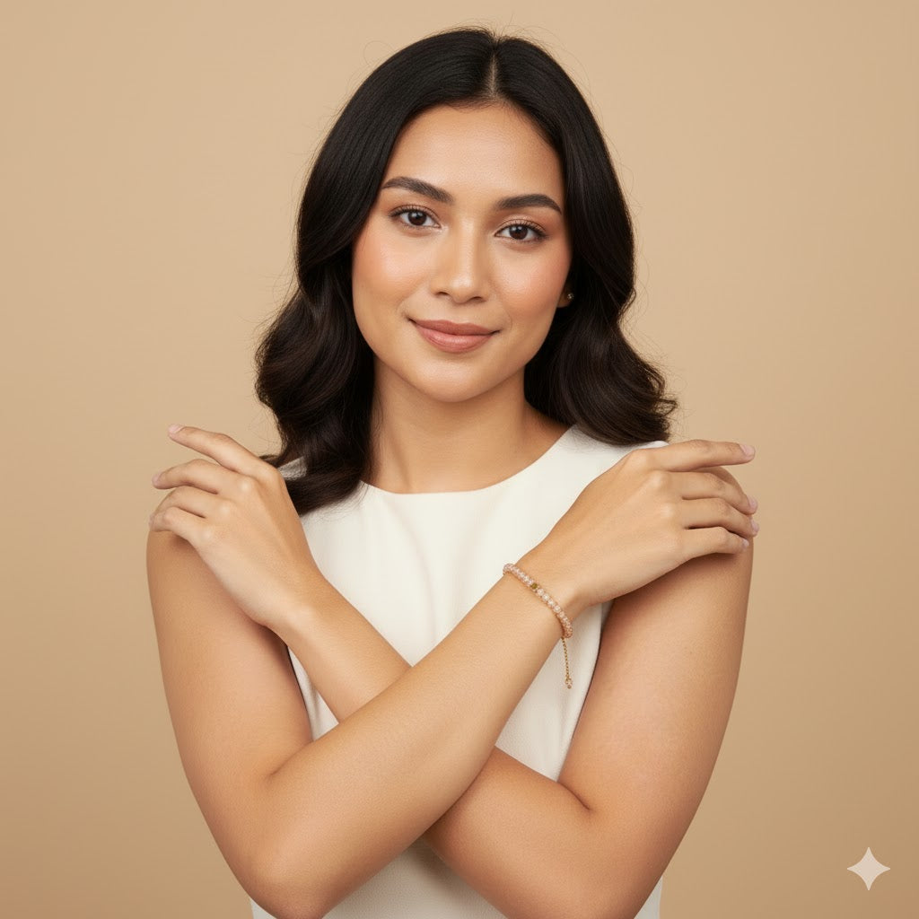 Indulge in the ethereal charm of our Crystalegance Moon Bracelet, a piece of jewelry exuding timeless elegance and celestial allure. Carefully crafted, this exquisite accessory boasts high-quality moon crystals—each exuding a doff-white glow reminiscent of a serene lunar landscape—that are meticulously hand-selected for their unique lustre. The pale radiance of these crystals is accentuated by the artful interweaving of gold and silver yarn, creating an understated symphony of warmth and coolness that harmonizes beautifully with any attire. The mixed metal design is a tribute to the diversity and unity of the cosmos, adding a sophisticated touch to your ensemble. Furthermore, the Crystalegance Moon Bracelet bears the essence of home, carrying an implicit reminder of the comfort and warmth that our roots provide, a gentle nod to your foundation no matter how far you venture. Slip it onto your wrist to add a touch of celestial elegance to your look, making it an ideal gift for yourself or a cherished one.