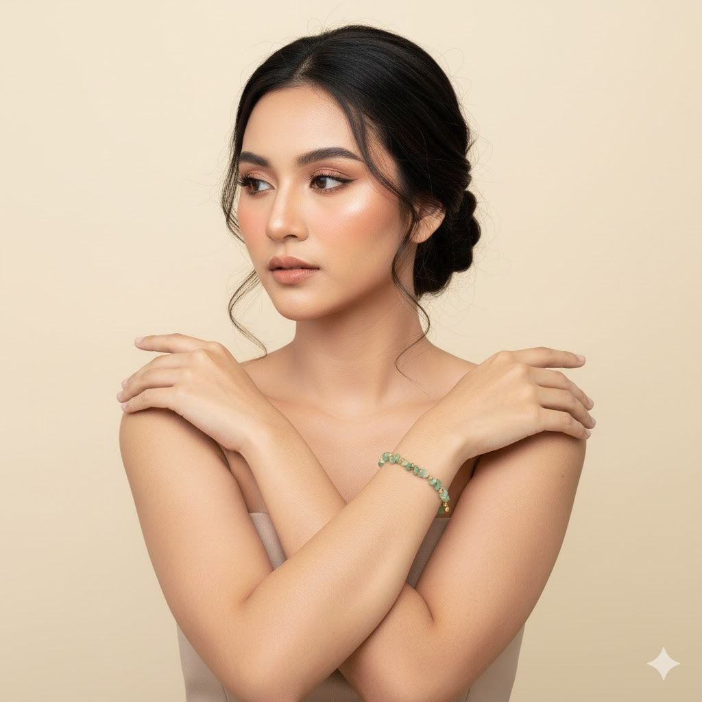 The Vivian Green Aventurine Bracelet is a vibrant and elegant accessory that showcases the natural beauty of Green Aventurine gemstones. Renowned for its shimmering green color and believed to bring luck and prosperity, each Aventurine stone is meticulously chosen and paired with high-quality stainless steel, ensuring durability and a distinctive charm. Ideal for those who appreciate the soothing energy and positive vibes of Green Aventurine, this bracelet makes a versatile and sophisticated addition to any jewelry collection, adding a touch of vibrancy and optimism to any outfit.