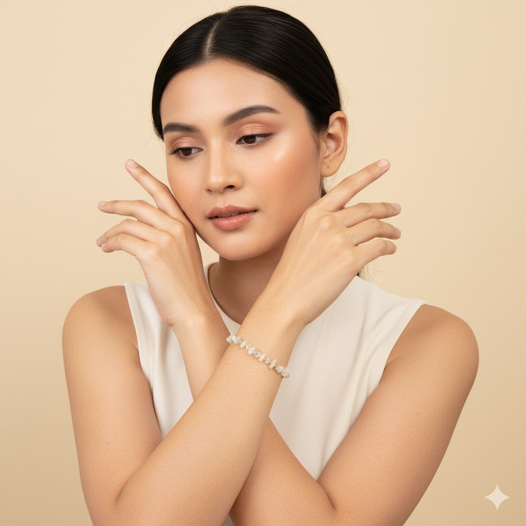 The Vivian Morganite Bracelet is a delicate and elegant accessory that showcases the soft and romantic beauty of Morganite gemstones. Celebrated for their gentle pink hues and loving energy, each Morganite stone is meticulously chosen and paired with high-quality stainless steel, creating a unique and durable piece. The Vivian Morganite Bracelet is perfect for those who appreciate the tender energy and subtle charm of Morganite, making it a versatile and sophisticated addition to any jewelry collection, adding a touch of warmth and elegance to any outfit.