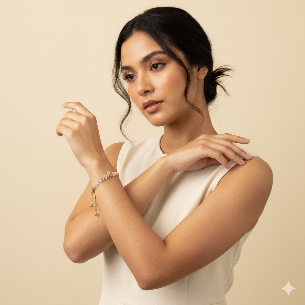 The Vivian Persian Gulf Stone Bracelet is a unique and captivating accessory that embodies exotic beauty and elegance. This bracelet features exquisite Persian Gulf Stones, known for their rich hues and cultural significance. Each stone is meticulously selected and paired with high-quality stainless steel, creating a refined and durable piece. The Vivian Persian Gulf Stone Bracelet is perfect for those who appreciate the allure and mystique of stones from the Persian Gulf, making it a stunning addition to any jewelry collection, adding a touch of sophistication and cultural richness to any outfit.