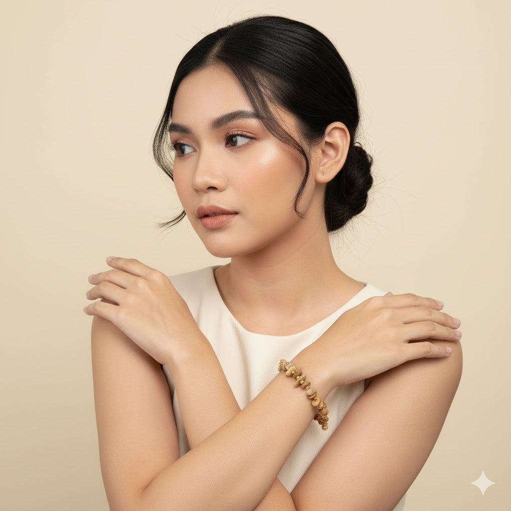 The Vivian Picture Stone Bracelet is a unique and artistic accessory that highlights the captivating beauty of Picture Jasper gemstones. Known for its scenic patterns and earthy tones, Picture Jasper is believed to inspire creativity and connection with the natural world. Each stone is carefully selected and paired with high-quality stainless steel, ensuring durability and a distinctive aesthetic appeal. Ideal for those who appreciate the natural beauty and grounding energy of Picture Jasper, this bracelet makes a versatile and sophisticated addition to any jewelry collection, adding a touch of artistic flair to any outfit.