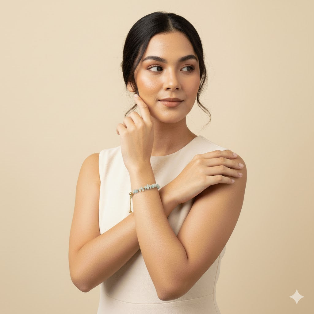 The Vivian Prehnite Bracelet is a graceful and sophisticated accessory that highlights the subtle and serene beauty of Prehnite gemstones. Admired for its soft green color and gentle energy, each Prehnite stone is meticulously chosen and paired with high-quality stainless steel, ensuring durability and a distinctive charm. Ideal for those who value the calming energy and understated elegance of Prehnite, this bracelet makes a versatile and refined addition to any jewelry collection, adding a touch of natural beauty and tranquility to any outfit.