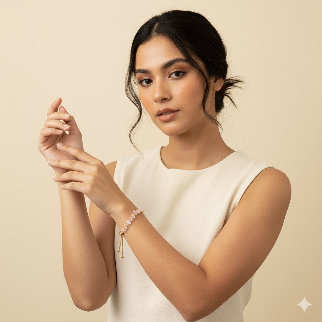 The Vivian Red Quartz Bracelet is a bold and elegant accessory that exudes energy and passion. This bracelet features striking Red Quartz gemstones, known for their vibrant red color and invigorating properties. Each gemstone is carefully selected and complemented by high-quality stainless steel, creating a powerful and stylish combination. The Vivian Red Quartz Bracelet is perfect for those looking to make a statement while embracing the dynamic energy of Red Quartz, adding a touch of sophistication and vitality to any ensemble.