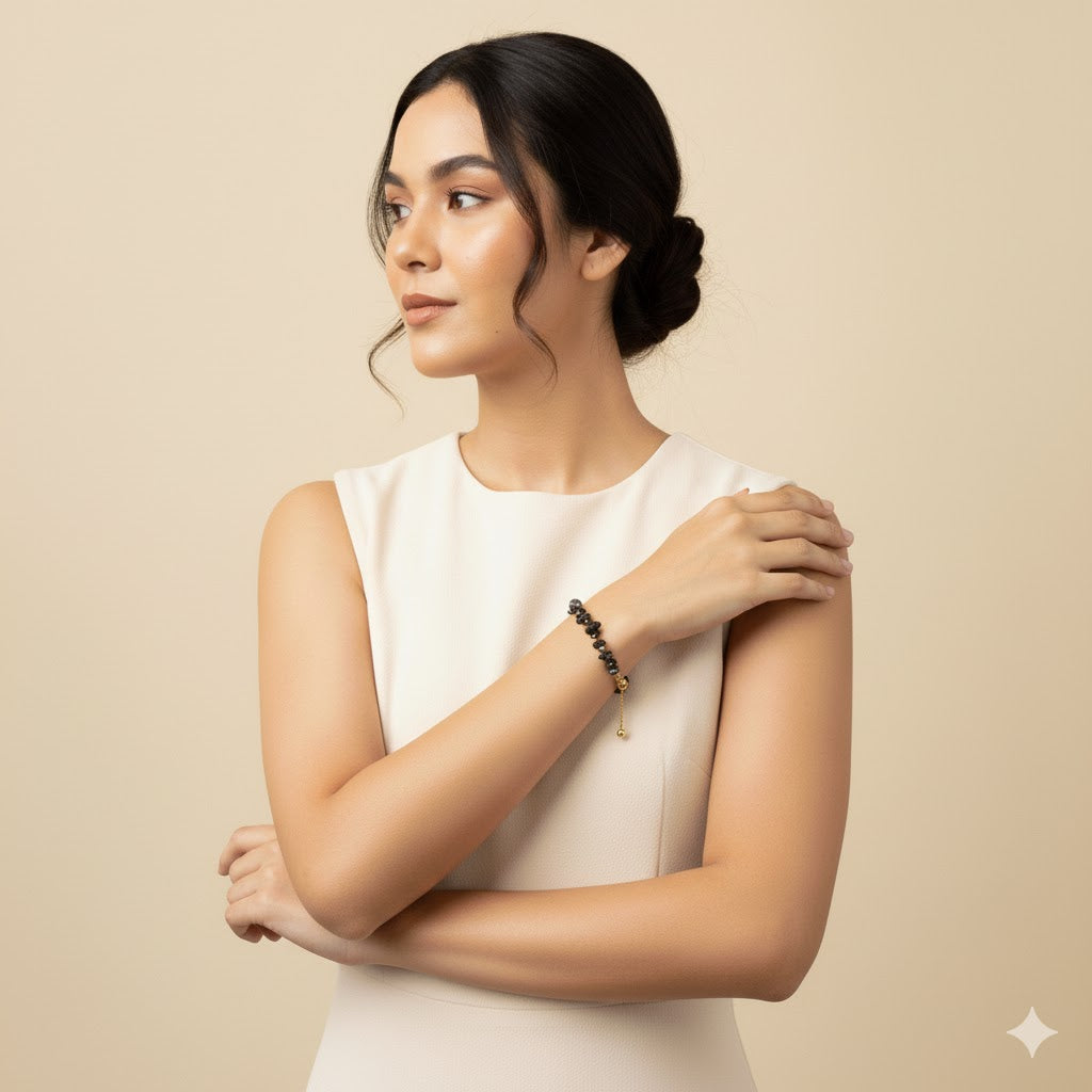 The Vivian Snowflake Obsidian Bracelet is a captivating and elegant accessory that showcases the unique beauty of Snowflake Obsidian gemstones. Renowned for its contrasting black base with delicate white snowflake-like patterns, Snowflake Obsidian is believed to bring balance and purity. Each stone is carefully selected and paired with high-quality stainless steel, ensuring durability and a distinctive aesthetic appeal. Ideal for those who appreciate the harmonious energy and striking appearance of Snowflake Obsidian, this bracelet makes a versatile and sophisticated addition to any jewelry collection, adding a touch of elegance and depth to any outfit.