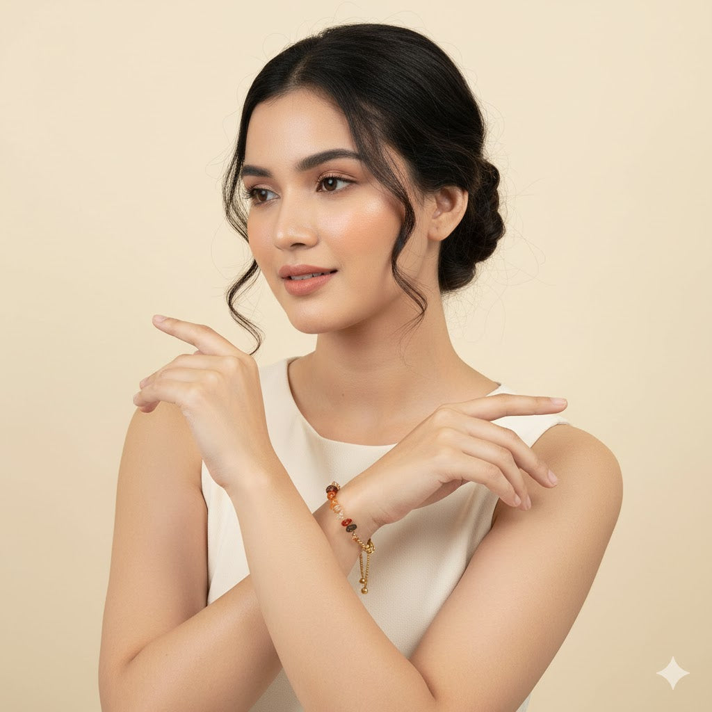 The Vivian Synthetic Red Stone Bracelet is a captivating and vibrant accessory that combines modern elegance with a touch of innovation. This bracelet features meticulously crafted synthetic Red Stones, designed to mimic the rich hue and beauty of natural red gemstones. Each stone is paired with high-quality stainless steel, creating a striking and durable piece. The Vivian Synthetic Red Stone Bracelet is perfect for those who appreciate the vibrant energy and bold aesthetics of red stones, making it a contemporary addition to any jewelry collection, adding a touch of sophistication and modernity to any outfit.